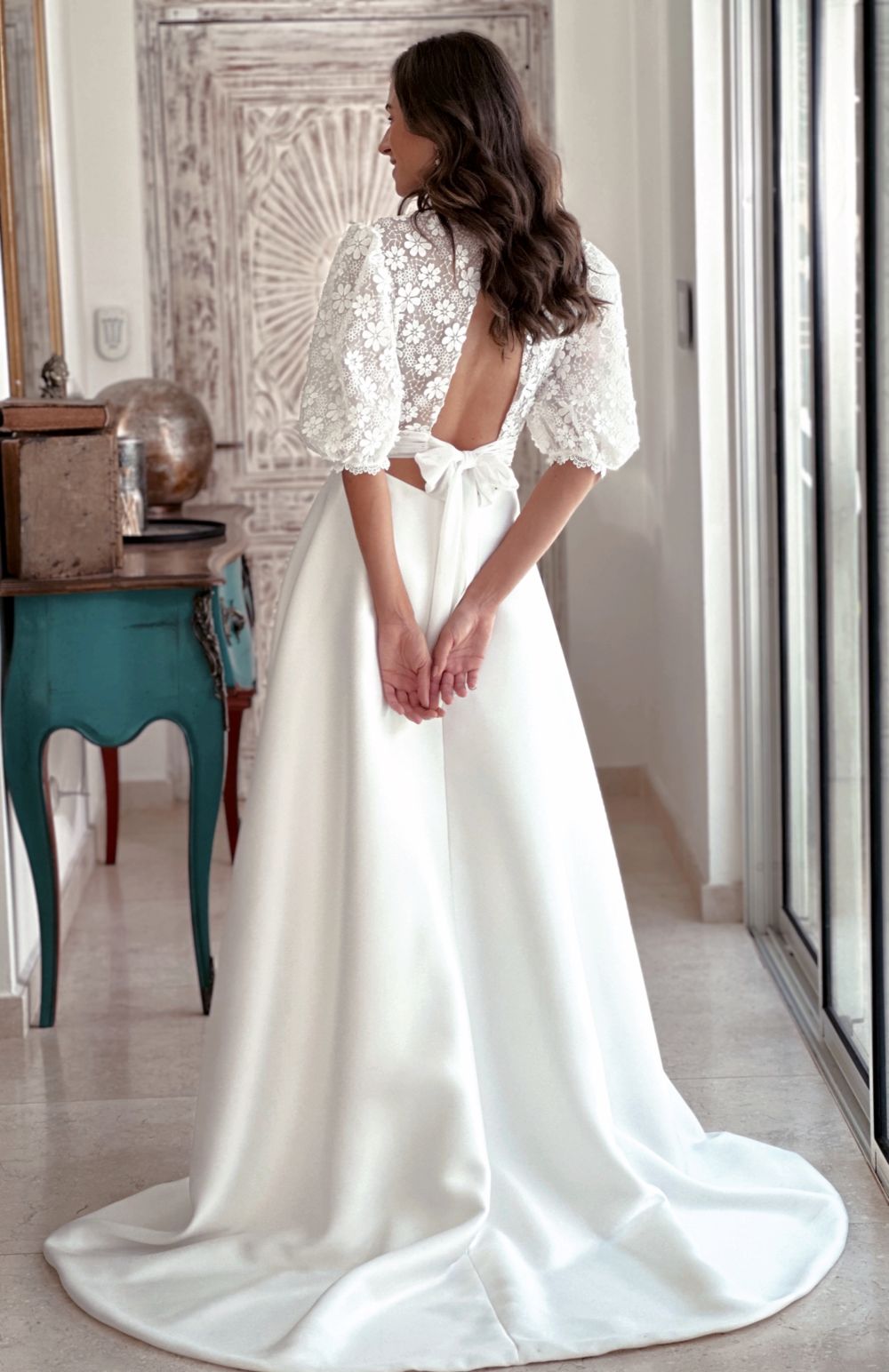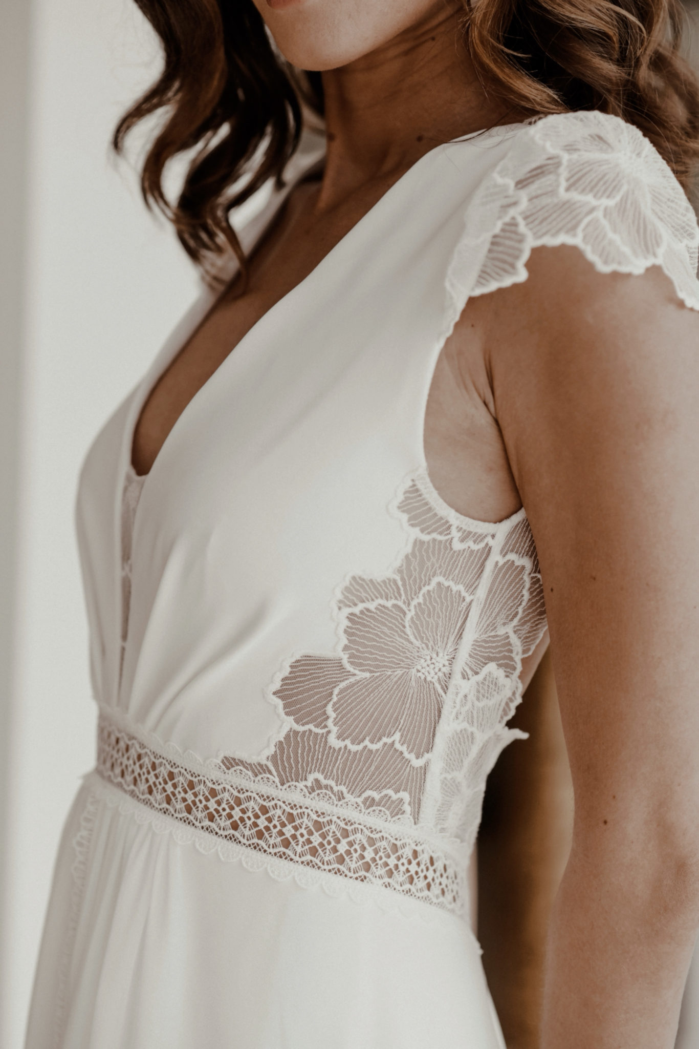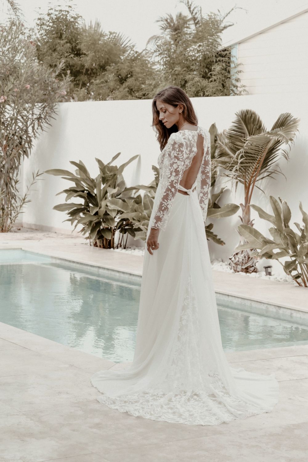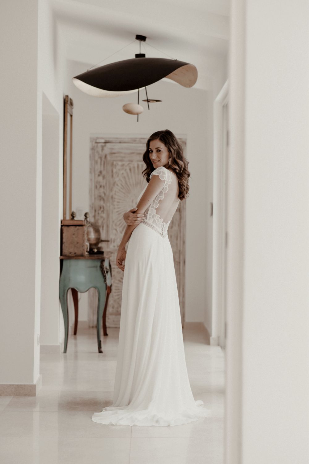 Ses créations se distinguent par des lignes épurées, des matières délicates, ainsi que par leur légèreté et leur grand confort, offrant aux mariées une liberté de mouvement tout au long de la journée. Sa sensibilité artistique mêle tradition et modernité avec justesse. À travers son travail, Fabienne Alagama célèbre une mariée libre, naturelle et résolument élégante, en quête d’une robe à son image.